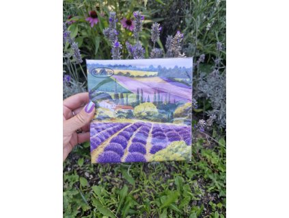 Dekorační plechová krabička - zásobník na papírové kapesníky Horní plnění Motiv levandule