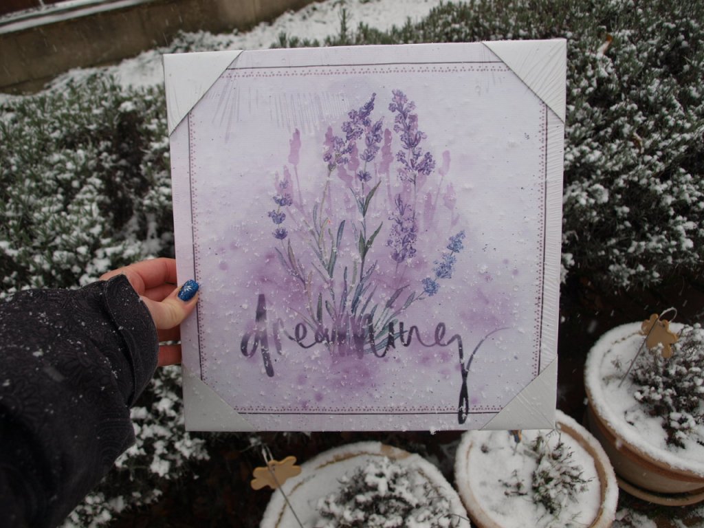Krásný levandulový obrázek na plátně na zavěšení nebo opření o stěnu.
