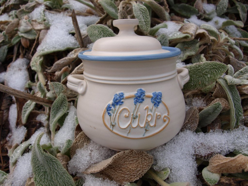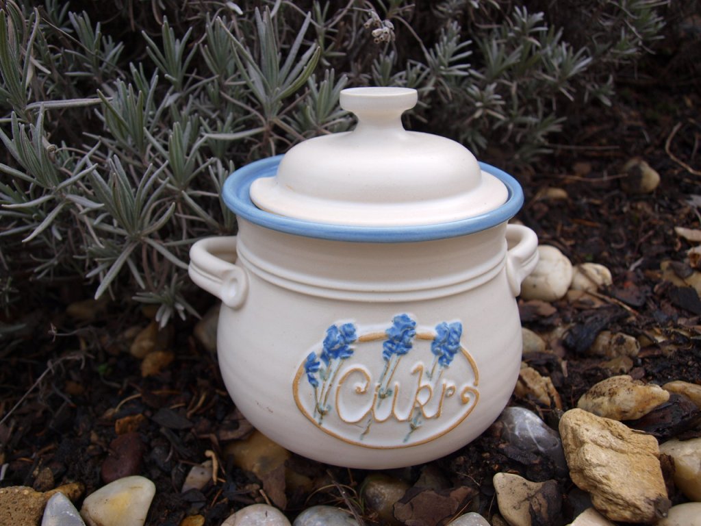 Nádoba na cukr s jemným ručně malovaným dekorem levandule.