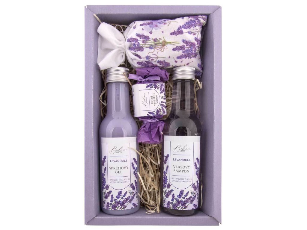 Dárková sada levandule premium – gel 200ml, šampon 200ml, mýdlo 30g a sůl 150g