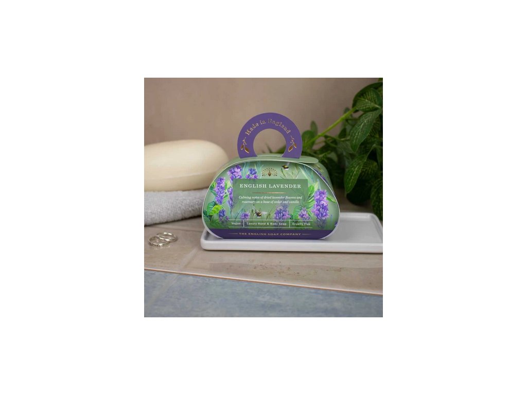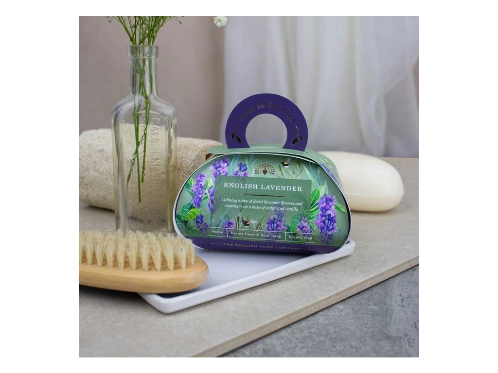 Tato luxusní mýdla, vyrobená tradičním způsobem a s pečlivě vybranými ingrediencemi, kombinují hedvábné hydratační vlastnosti s okouzlujícími vůněmi. Vůně levandule a rozmarýnu s tóny vanilky, cedrového dřeva a mošusu. Tuhé mýdlo obsahuje výživné bambucké máslo a rostlinný glycerin, které nejen zbavují každodenní nečistoty, ale také hýčkají a chrání Vaši pokožku a zanechávají ji hebkou a jemnou na dotek.
