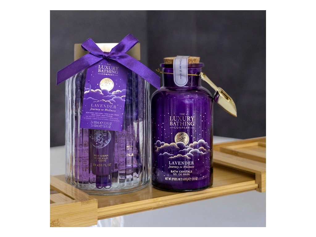Kolekce Lavender využívá tolik známou vůni levandule a esenciální oleje, které zklidňují mysl a podporují maximální relaxaci. Každá sada je vytvořena tak, aby tělo připravila na hluboký spánek a blažený únik do světa snů. Celou kolekci provází tradiční fialová barva a zlaté detaily. Osloví všechny věkové kategorie.
