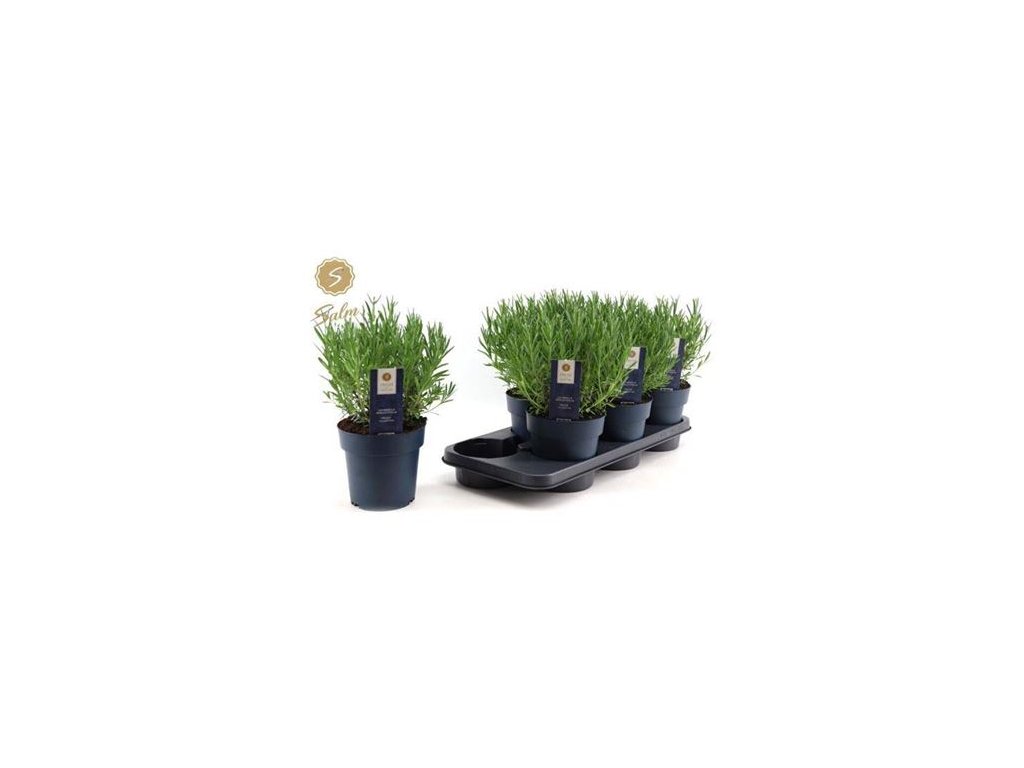 Středně vysoká levandule se stříbrnými listy Květy jasně fialové Pěstujeme jako okrasnou trvalku Květináč 9 cm Dostupnost jaro 2026