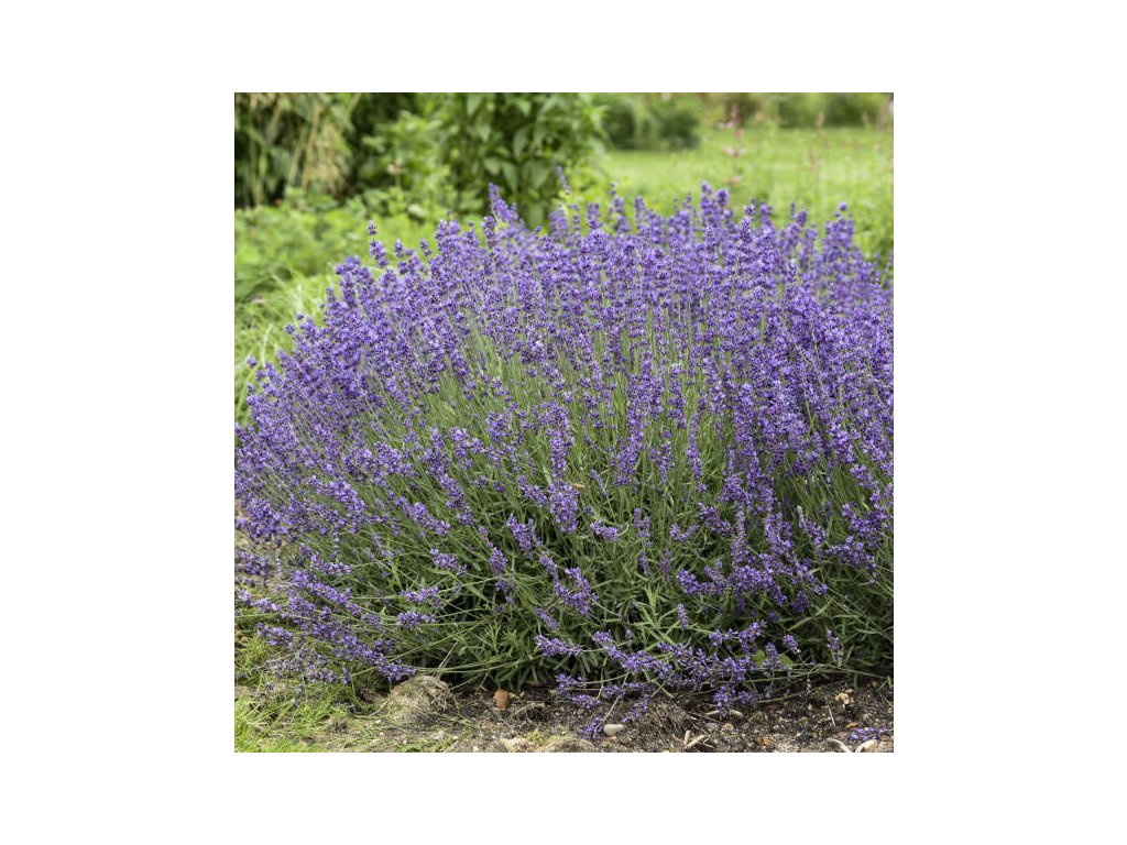Sazenice pravé francouzské levandule se stříbrnými listy V dospělosti dorůstá v době květu 90 cm Květy světle fialové na dlouhých stoncích Celá rostlina je výrazně aromatická Kontejner 10 cm