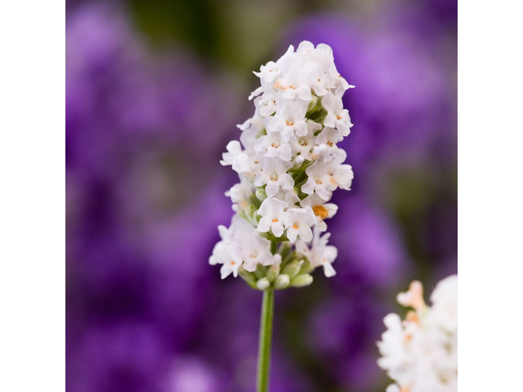 Bíle kvetoucí levandule lékařská Dorůstá střední velkosti - cca 40cm Kontejner 9 cm Vypěstováno v ČR Dostupnost jaro 2026