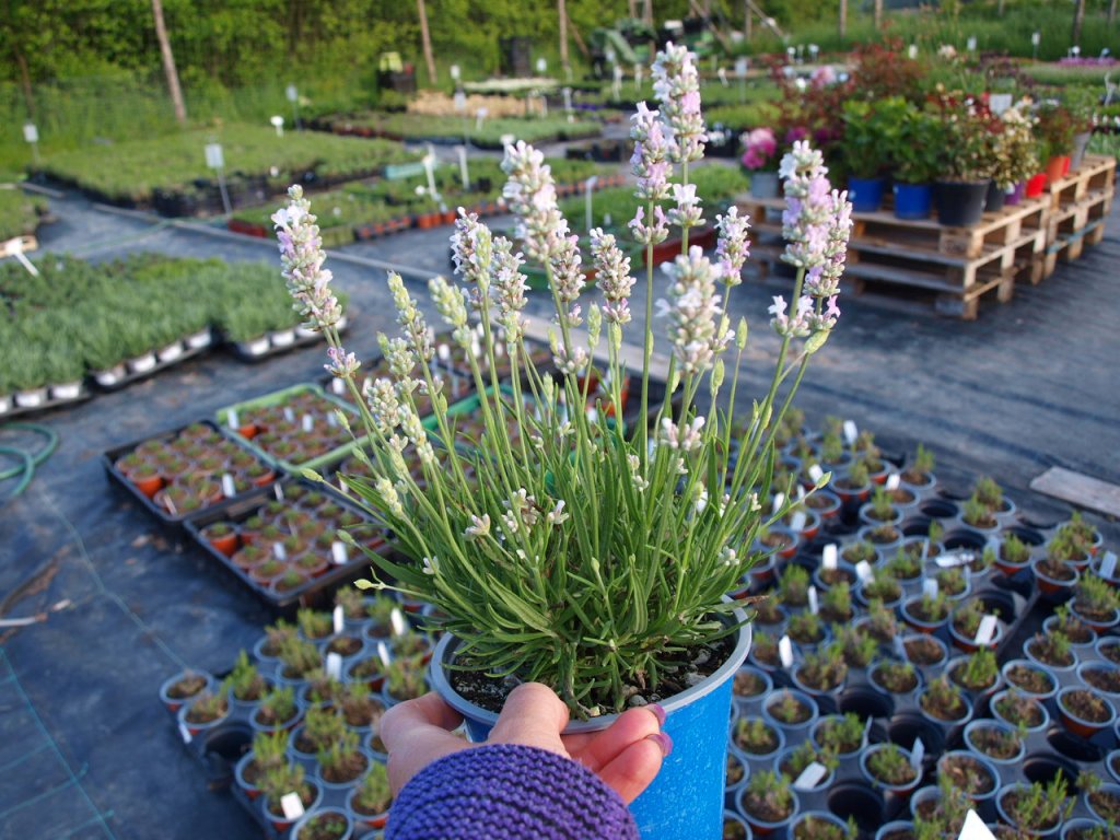 Levandule francouzská pravá - " Lavandin " Dorůstá 80 - 90 cm Květy světle fialové na dlouhých stoncích Květináč o průměru 9 cm Odesíláme začátkem dubna 2026