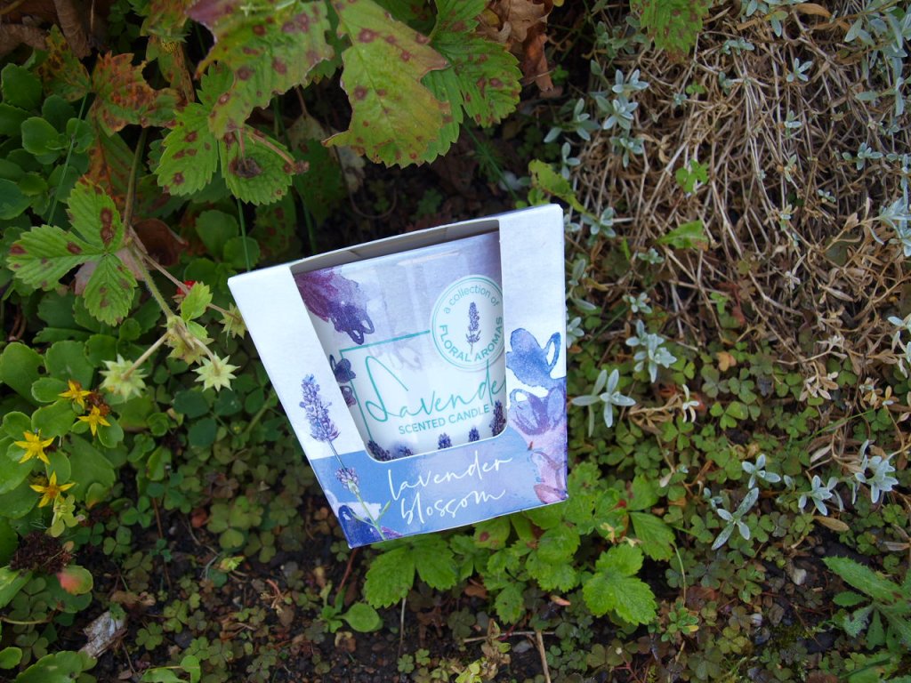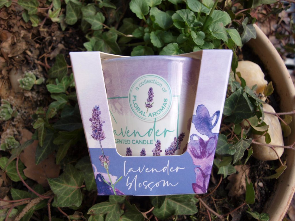 Velmi pěkná parafínová svíčka ve tvaru disku Motiv levandule, vystouplý reliéf Vhodná jako dárek Zabalena do celofánu